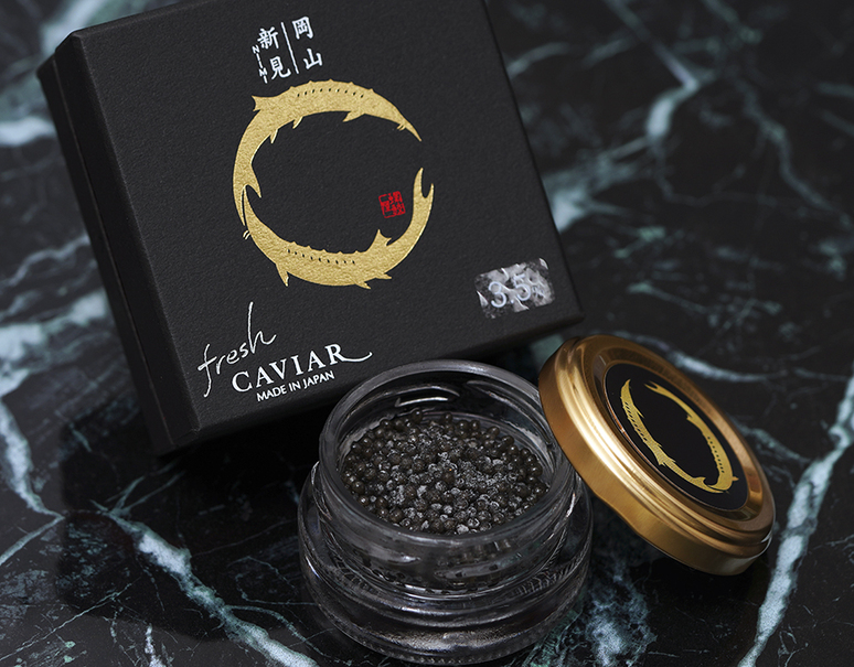 小阪部川支流の湧水は、石灰岩を通して流れ込むことで硬水となり、ヨーロッパのキャビアの産地にも似た水質を持ちます。現在は約12,000尾のチョウザメを養殖し、年間約100kgのキャビアを生産しています。